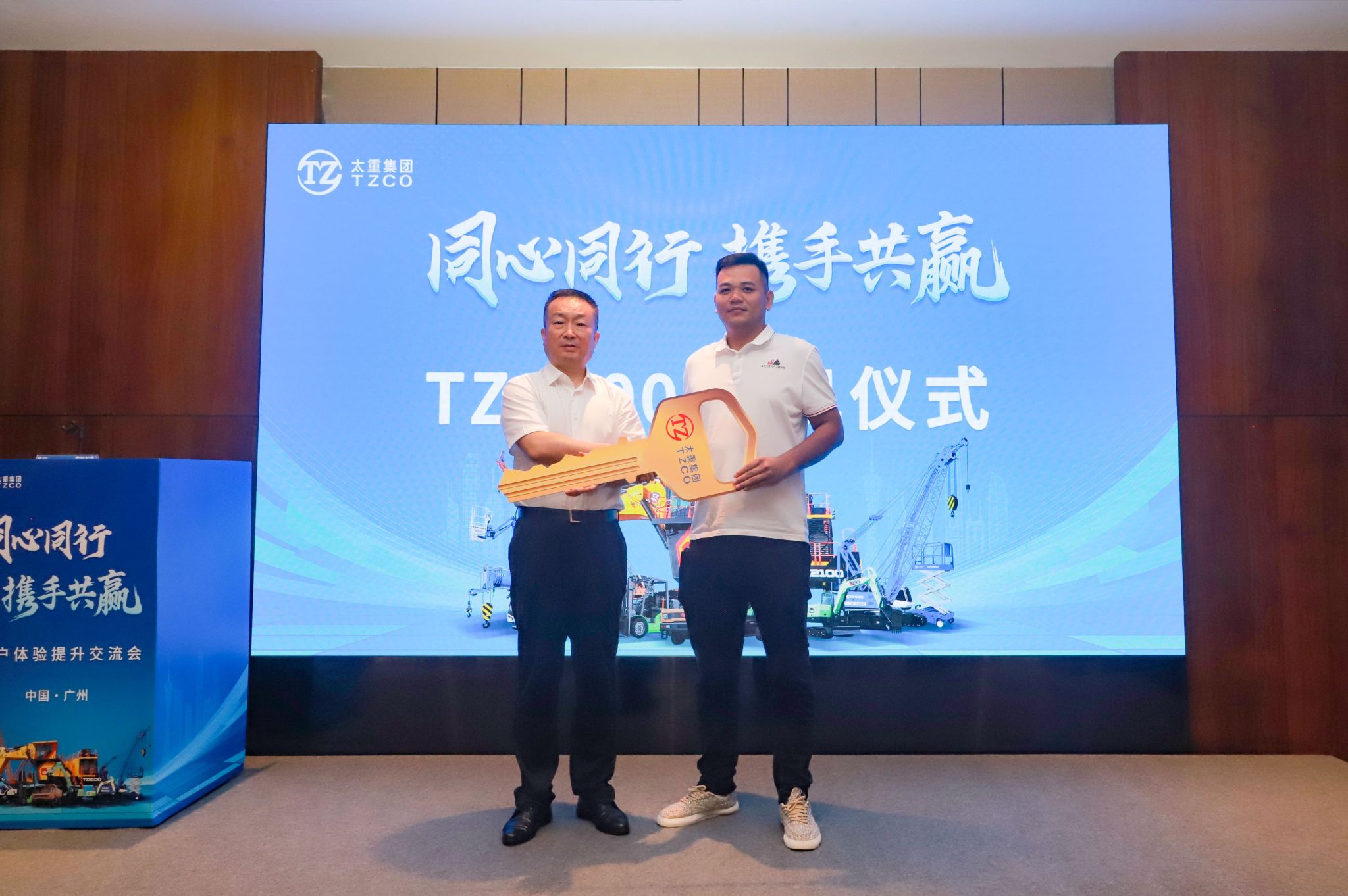現(xiàn)場舉行了華南地區(qū)首臺TZ1000百噸挖掘機交機儀式,以及百臺高機的戰(zhàn)略合作簽約儀式,為與會嘉賓注入更強信心。