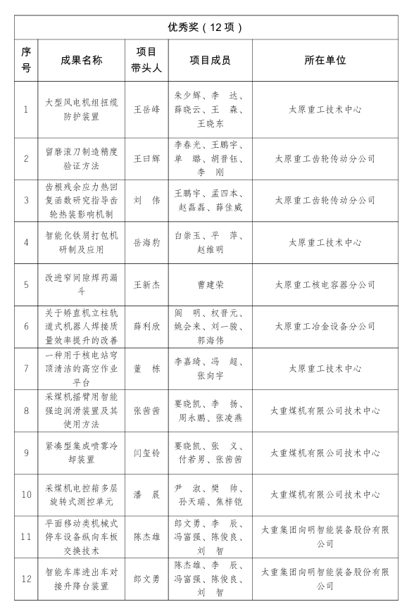 太重57項“五小”創(chuàng)新成果在省市獲獎