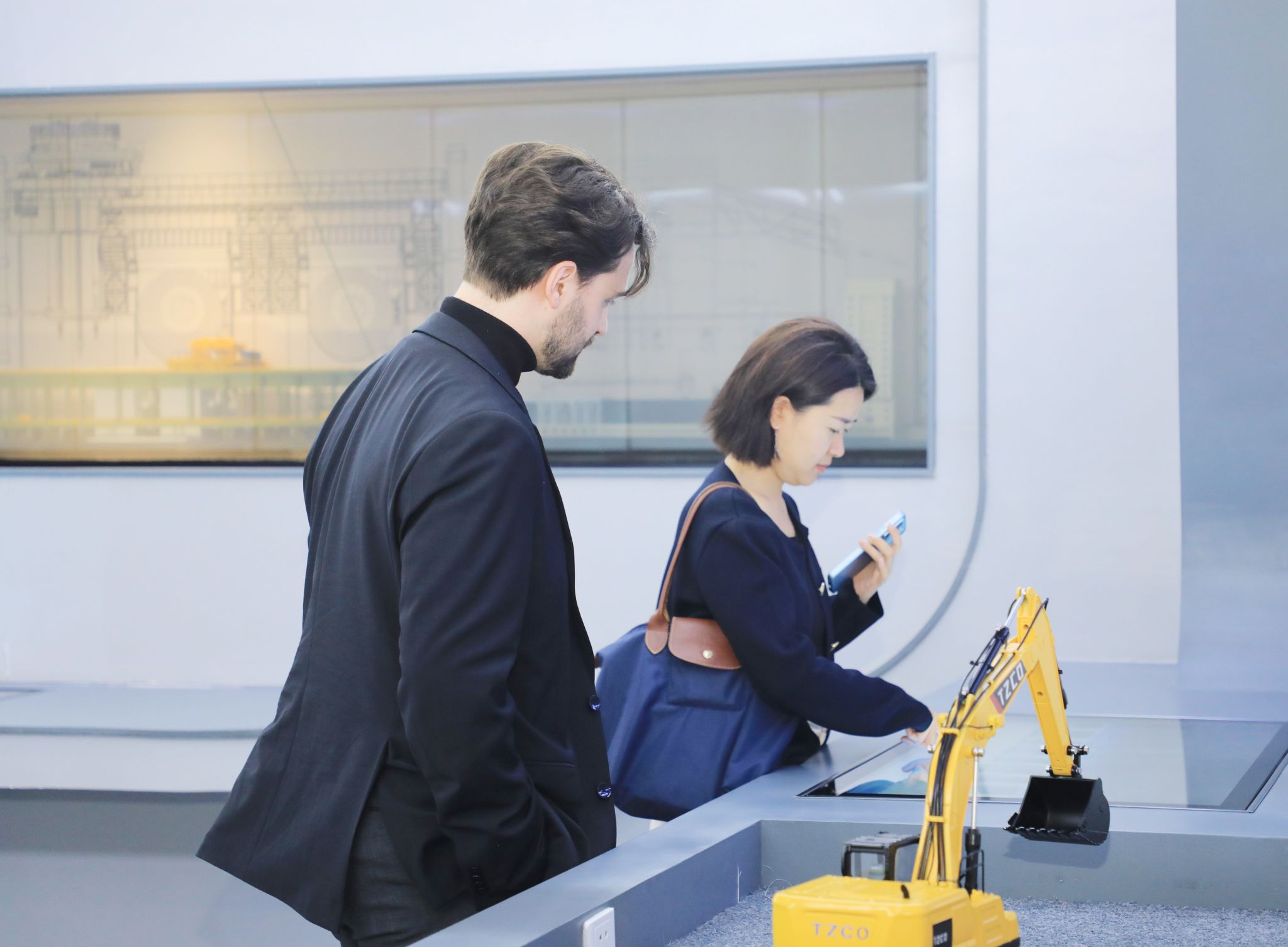 參觀過程中,代表團一行沿著太重75年的發(fā)展長廊,深入了解了公司推動重型機械與工程機械融合發(fā)展的轉型過程。宣傳片《國之太重》中,一系列高端裝備讓代表團直觀感受“大國重器”的科技含量;在發(fā)射塔架模擬演示區(qū),不少成員舉起手機記錄這一場景;在5G遠程操作挖掘機演示區(qū),大家實地操作,親眼見證重型機械在數(shù)字化加持下精準完成挖掘、行走、卸載等一系列動作,紛紛點頭稱贊。期間,大家相互探討、深入交流、不時詢問,結下友誼、留下機會。