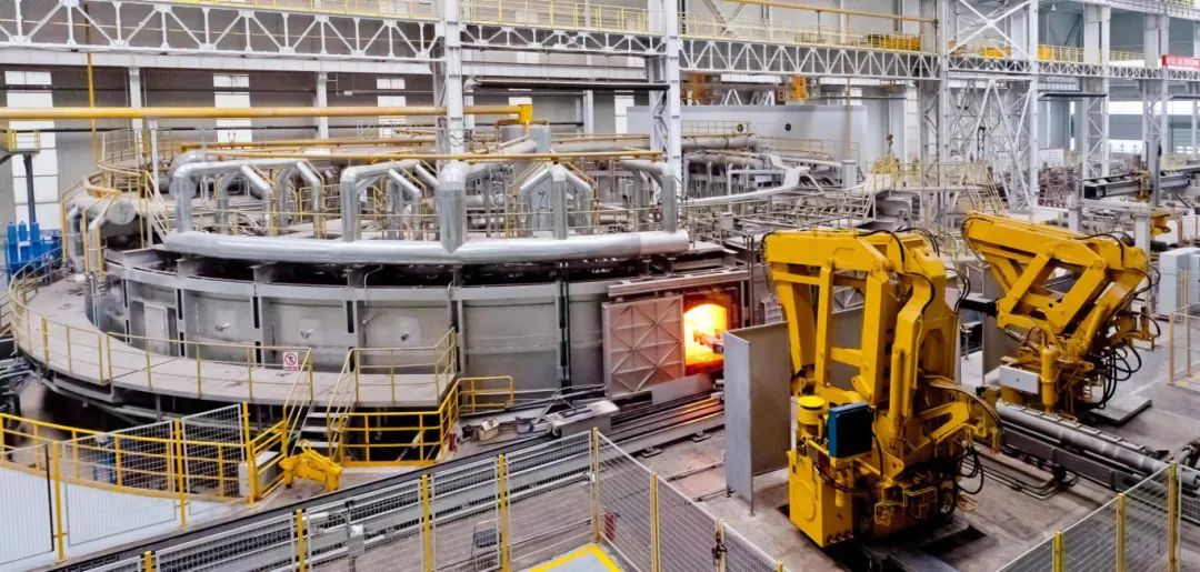 6月20日,軌道公司車輪廠二線上,大型智能環(huán)形加熱爐正對(duì)車輪鋼坯進(jìn)行自動(dòng)精準(zhǔn)加熱。