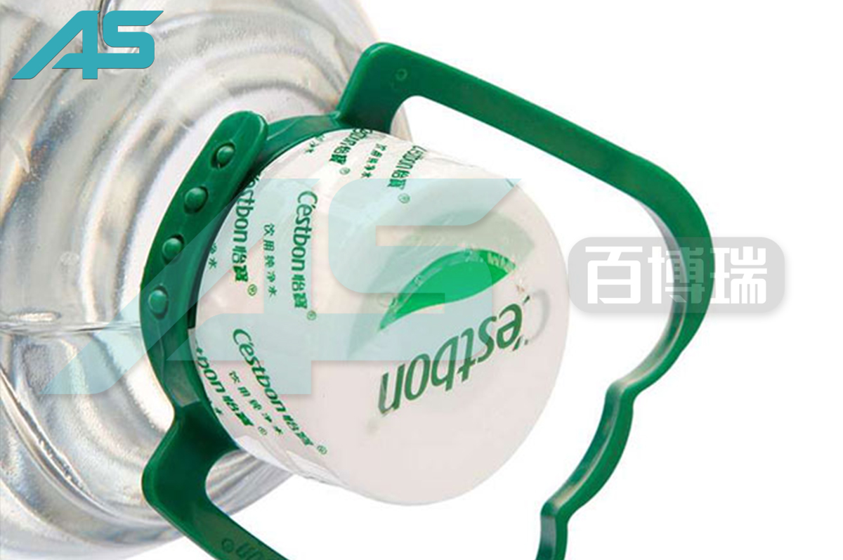 為2L-12L大塑料瓶裝水, 油,酒等自動壓環(huán), 壓環(huán)后大瓶更便于客戶提攜。