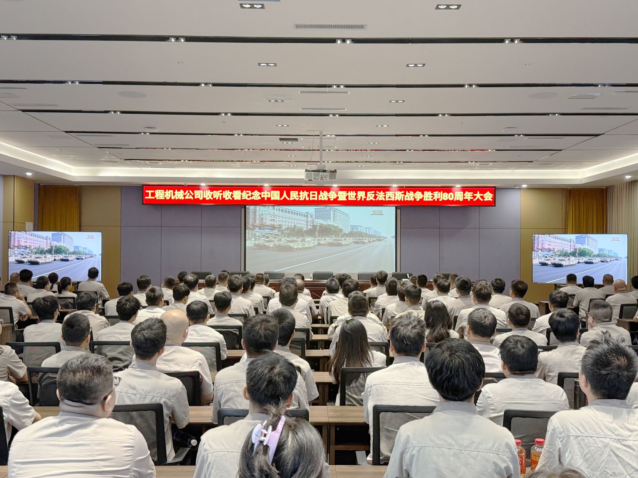 在集團(tuán)總部報(bào)告廳,集團(tuán)公司領(lǐng)導(dǎo)與各部門職工代表齊聚,集中收聽收看大會(huì)實(shí)況直播,共同聆聽感悟習(xí)近平總書記發(fā)表的重要講話,深刻體會(huì)講話中蘊(yùn)含的歷史意義與時(shí)代價(jià)值,見證這一莊嚴(yán)而光輝的歷史時(shí)刻,愛國(guó)情懷在太重激蕩,奮斗熱情在每一位職工心中點(diǎn)燃。